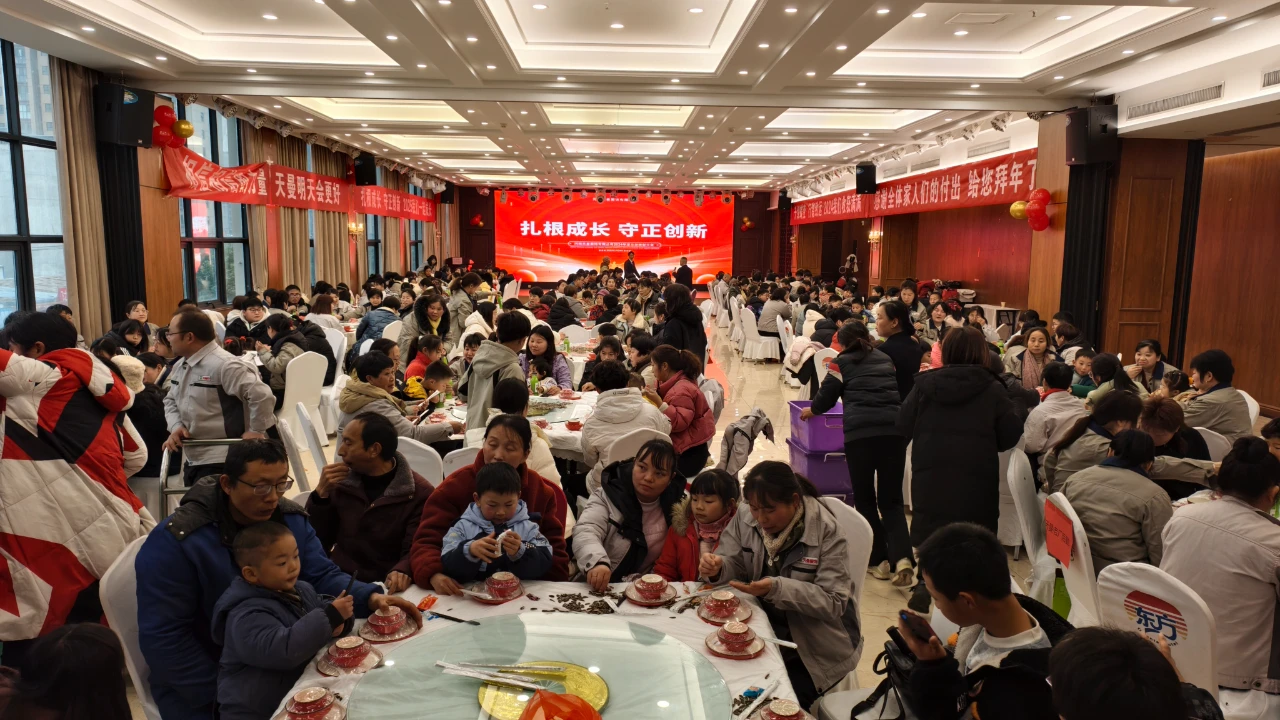 年會現場播放著來自海內外客戶的新年祝福視頻,來自三個自有工廠的家人們著裝整齊、喜氣洋洋的有序入場,受邀參會的內鄉(xiāng)縣領導、公司領導前排就坐,主持人有公司設計總監(jiān)、廠長助理擔綱,會議在上午9:00快樂開啟!